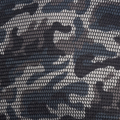 Stunning fabric with a camouflage base and a sexy industrial-look mesh laid on top: subtle but stunning.