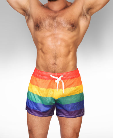 Move with pride. The Alpha Charlie Rainbow Front Line Short is made from breathable sports mesh fabric that keeps you cool, comfortable, and confident — wherever the day (or night) takes you. Designed for individuals who like to stand out, these lightweight athletic shorts feature a relaxed fit and easy movement, perfect for training, festivals, or casual wear.