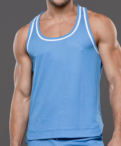 Serve varsity vibes with a sexy twist in the Fit Mesh Training Tank. With the classic athletic trim and a breathable mesh body, this sporty essential is made for guys who want to break a sweat and still look good doing it. Whether you’re lifting, lounging, or flirting courtside, this tank keeps the energy cool and the attention on you. Available in preppy Blue and masculine Black, for whichever team you're playing for. Pair with matching shorts to complete the look. And thanks to the limited edition design and slimming, form-fitting cut, this will quickly become your favorite top. Let's get physical!