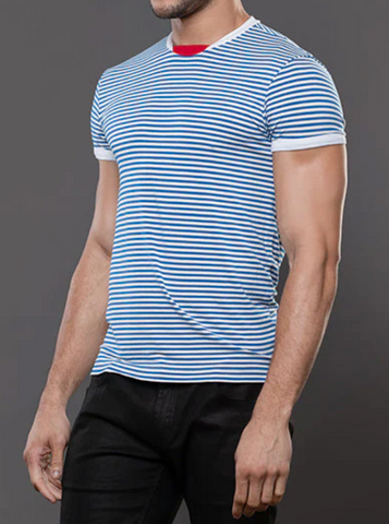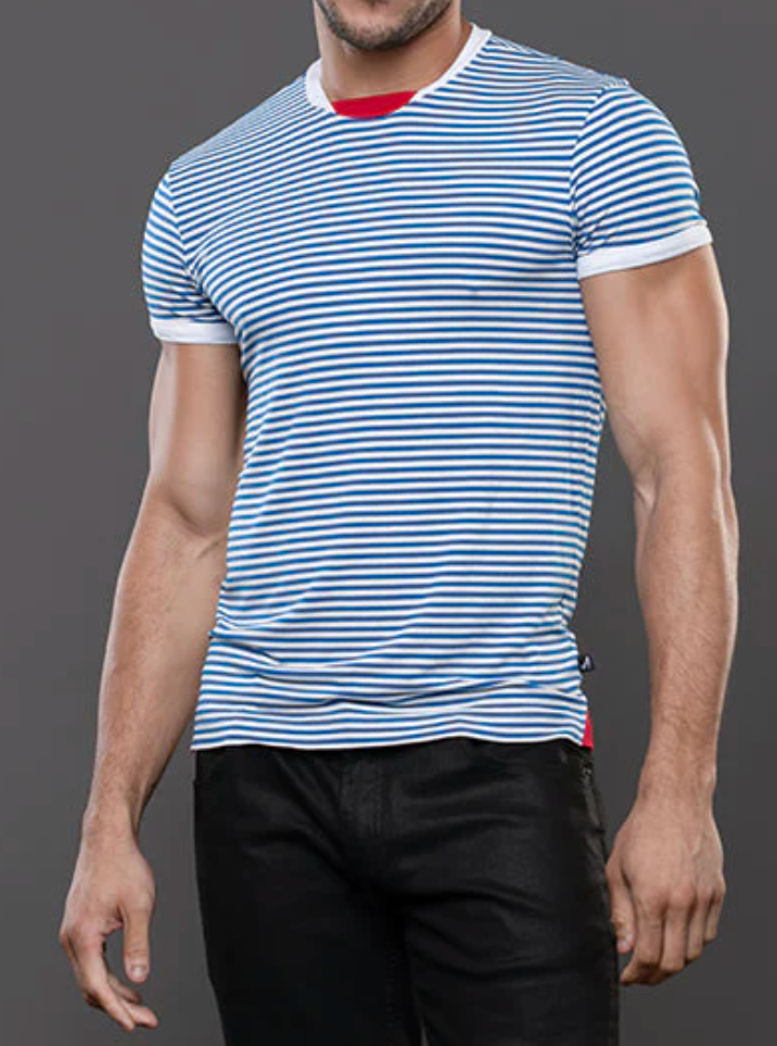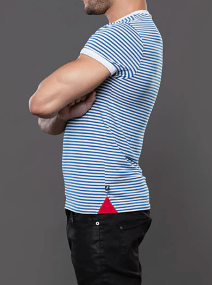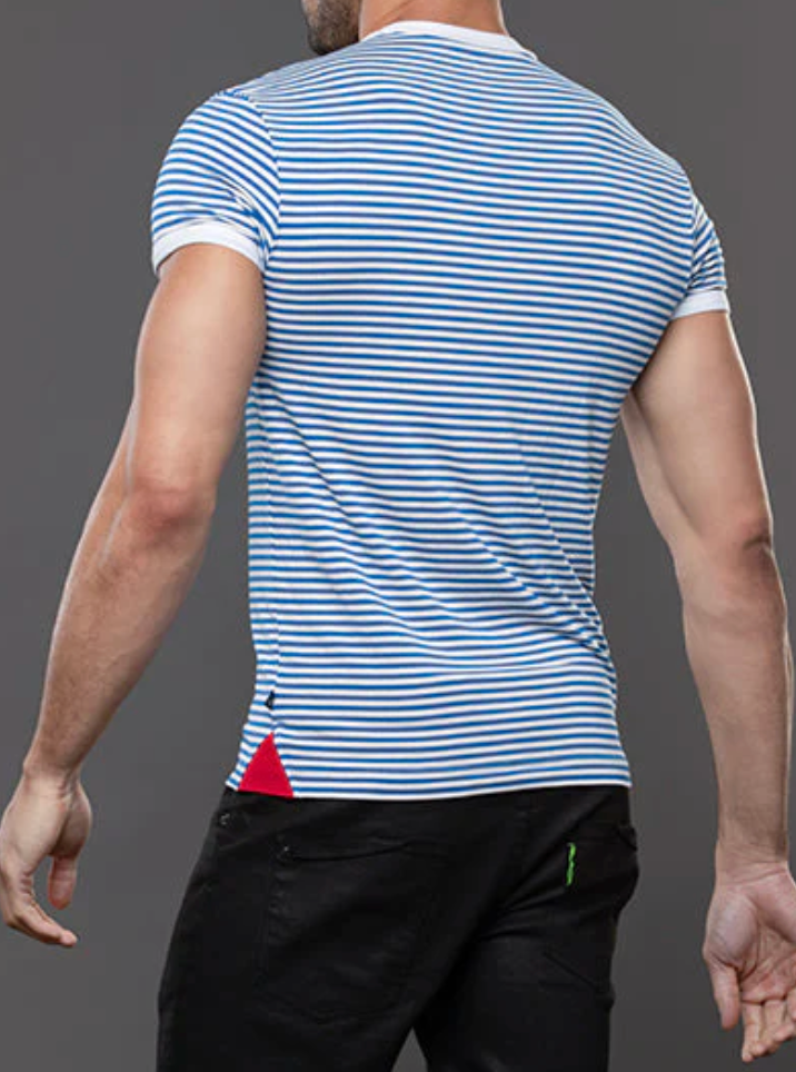 The Miami Cabana Boy Ocean Drive Tee is your ticket to sailor fantasy realness. With crisp blue-and-white stripes and retro ringer trim, it’s giving classic French Riviera with a splash of South Beach sass. Soft, stretchy, and cut to hug just enough, this tee looks just as good tucked into tiny shorts as it does tossed aside at the pool. Anchors not included. And thanks to the limited edition design and slimming, form-fitting cut, this will quickly become your favorite tee. Easy, breezey, and hot AF.