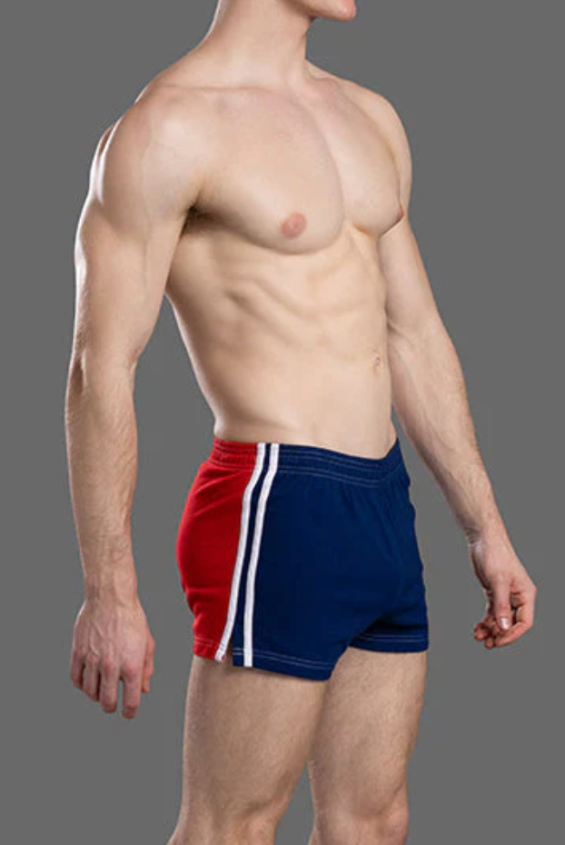 Classic gym class meets gay varsity fantasy in the bold new Navigator Shorts. With crisp color-blocking, retro piping, and flattering fit, this throwback essential brings prep school energy with a sexy twist. Whether you’re channeling a team captain or a teacher’s pet, it’s a total win for your wardrobe. And thanks to the limited edition design and slimming, form-fitting cut, this will quickly become your favorite pair of shorts. Set sail for sexy. Pair with a matching top to complete the look.