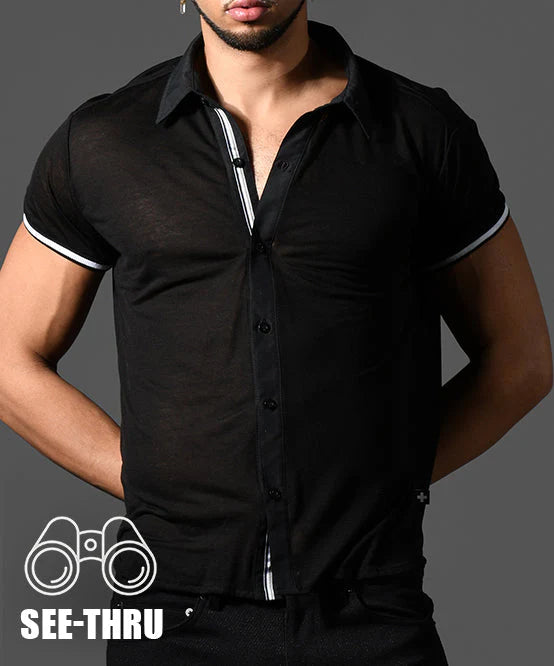 Slip into the chic new Sheer Burnout Button-Up Shirt and fall in love with its sexy, soft, and semi-transparent fabric. The semi-sheer, textured top in this limited edition black masc design makes for one special item! And thanks to the slimming, form-fitting cut, and flattering, cozy fit, this will quickly become your favorite top. Grab one before they're gone!