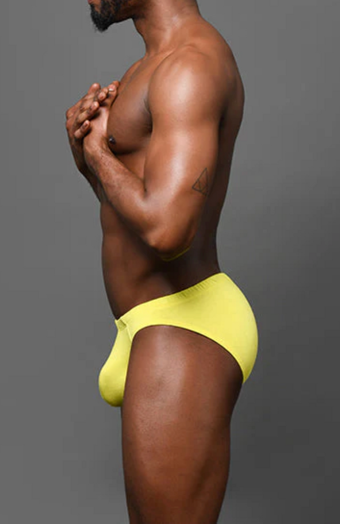 Underwear that disappears under clothes but leaves nothing to the imagination when it counts. The Happy No-Show Brief underwear is crafted from soft, breathable cotton with a sleek, low-rise cut designed to stay hidden beneath even your tightest fits. Available in Citrus Yellow and Tan, this versatile pair keeps you comfy, confident, and ready for anything. Plus, with these undies, we’ve virtually eliminated sticking, squashing, re-adjusting, sweating, and chafing. When you pull them on, your package will fall in naturally into our amazingly cozy pouch with a fun snuggle fit. You’ll have a truly enjoyable and unique wearing experience. Now that's happiness!