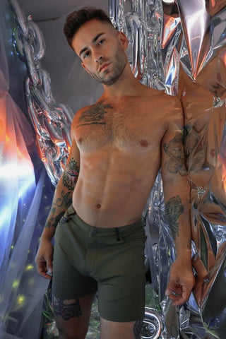 Sometimes a man likes to keep it on the downlow - we mean keepin’ it sexy without showing too much skin. We made a pair of resort shorts that are simple, but look butch. You’ll be living your DL fantasy in the heavy-weight knit fabric that is both soft and stretchable for the perfect fit. And with five pockets - with faux leather details - you’ll have plenty of places to put your party favors.