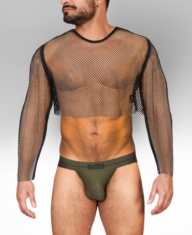 Own the night. The Alpha Charlie Diamond Mesh Long-Sleeved Crop Top is crafted from black-on-black stretch mesh with subtle diamond-pattern sequins that shimmer with every move. Designed for individuals who like to stand out, this lightweight, breathable top delivers comfort, confidence, and just the right amount of shine.