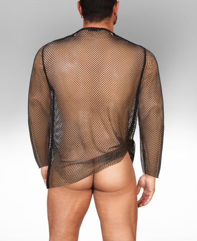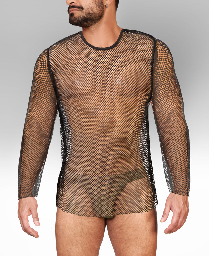 Built to glimmer under pressure. The Alpha Charlie Diamond Mesh Long-Sleeved Tee features black-on-black stretch mesh with diamond-pattern sequins that catch the light from every angle. Lightweight, breathable, and flexible, this see-through mesh shirt delivers the perfect mix of edge and sophistication.