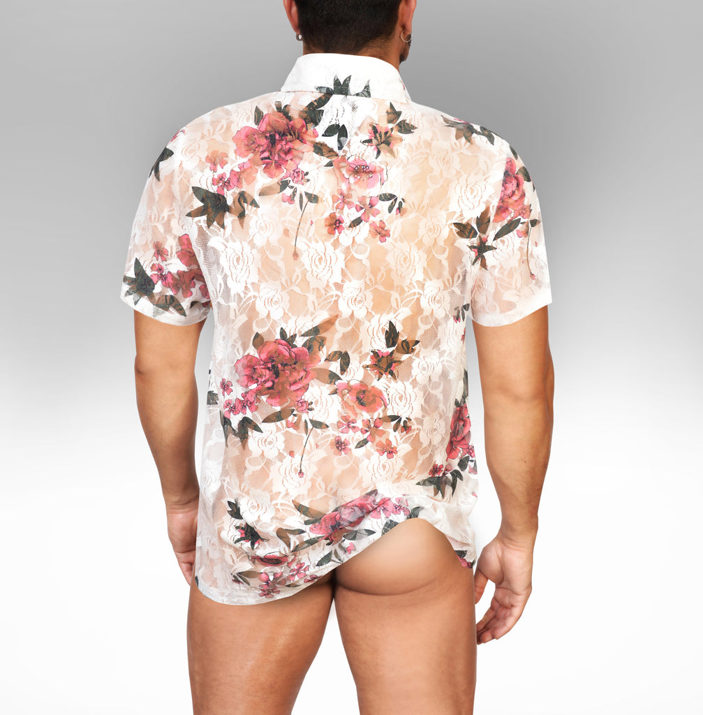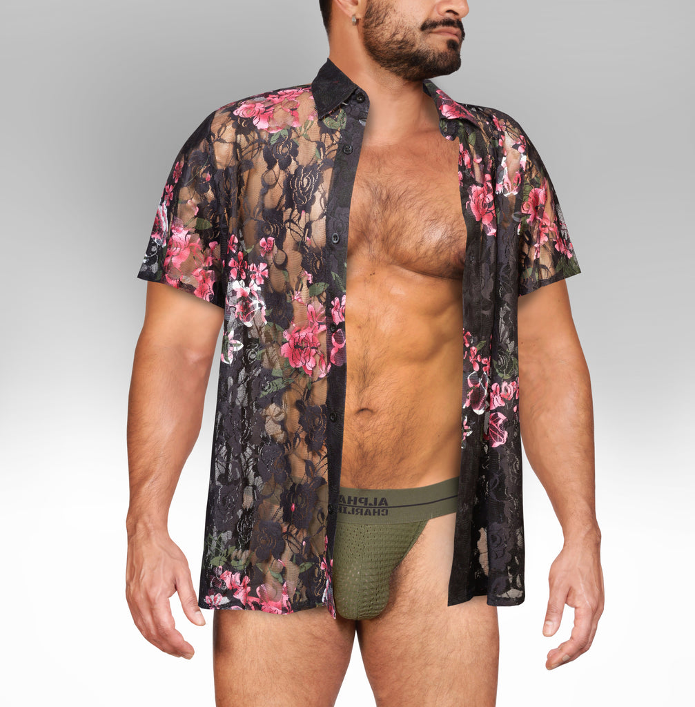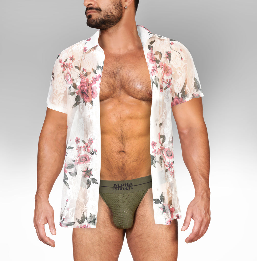 Alpha Charlie's Floral Shirt. Our number one best seller. See through mesh floral shirt. Make a statement with this beautiful and delicate shirt that will leave you feeling sexy, free and confident.