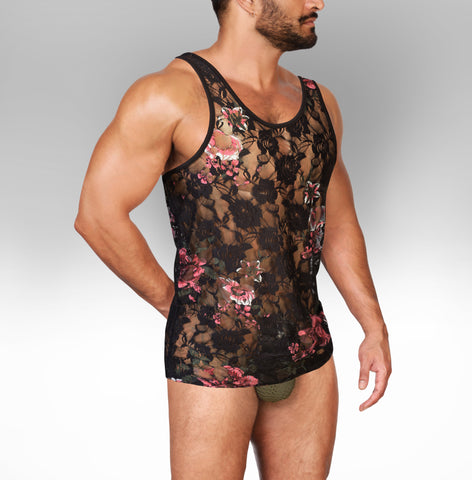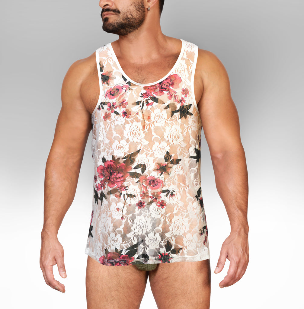 Alpha Charlie's Floral Tank. See through mesh floral shirt.