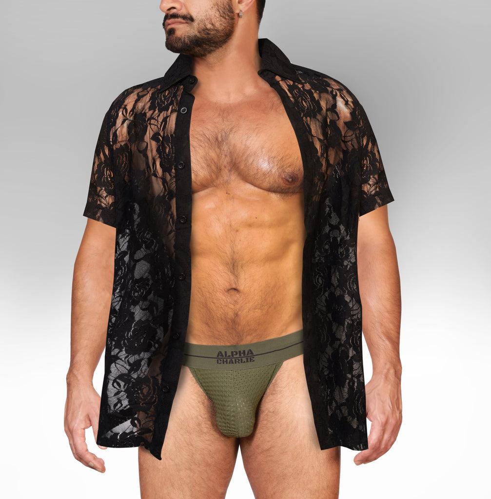Alpha Charlie's Rose Mesh Shirt. See through mesh shirt. (same base fabric as our floral shirt)