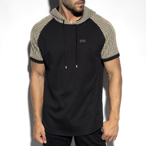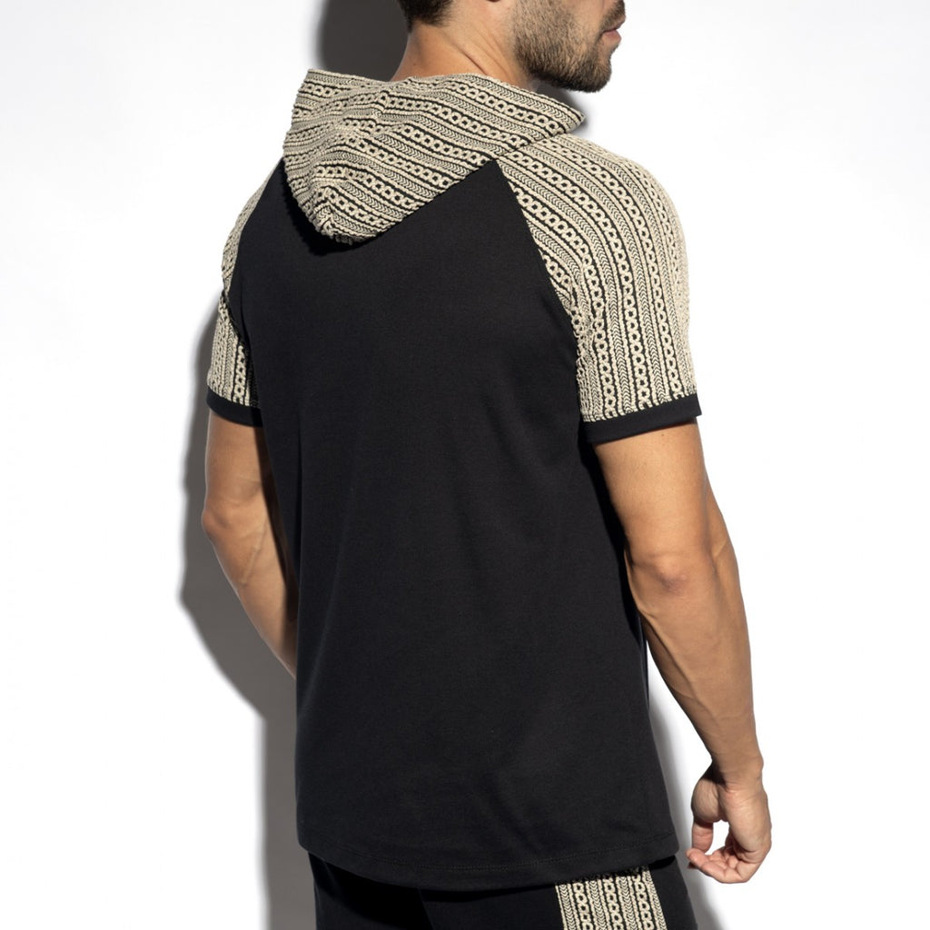 Substantial & thick short-sleeve Hoody with ancient Greek-inspired design patterns on arm sleeve areas & all over the top hood-part.