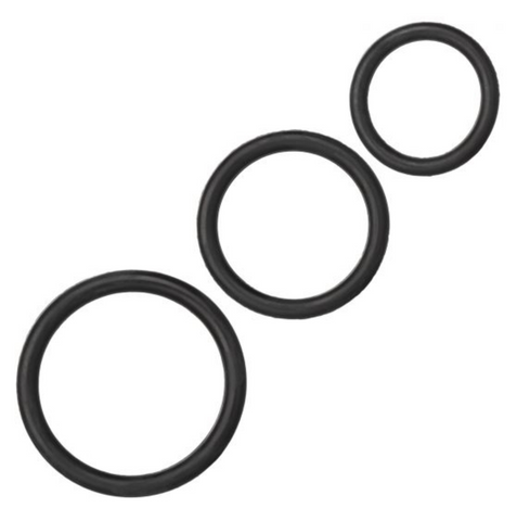 Enhance your erotic sensual satisfaction and performance with the sleek and discreet Rubber Ring Black 3 Piece Set. The trio of erection enhancers are easy to use, comfortable to wear, and great for instant arousal stimulation and gratification extension. The flexible rubber adornment rings are supplied in 3 different sizes and are designed to maximize your intimate, sensual encounters. The stretchy enhancers comprises of 3 individual adornment rings that are made from soft and smooth rubber and comfortably slip over the erect penis for stimulation support during intimate play. For increased sensitivity and extended orgasmic ecstasy, it is recommended that you use a quality lube with this toy. Use the versatile, comfort fit enhancers for performance maintenance and extended satisfaction. The enhancers are ideal for spontaneous self-gratification, and for sensuous couple’s play exploration. The rings are suitable for the first time and experienced users, and can be used alongside your favorite vibrating stimulator toys. Slip on the preferred flexible ring size, and prepare for unlimited tantalizing sensations and mind-blowing explosions. Super-size your sensual experiences with the rubber ring set. Before and after every use, clean the adornment rings with a toy cleaner spray, or wash in warm, soapy water.