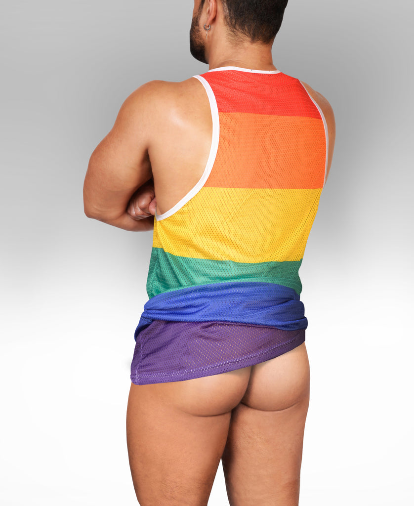 Lead with colour. The Alpha Charlie Rainbow Front Line Tank Top is crafted from breathable sports mesh fabric that keeps you cool while letting your pride shine through. Designed for individuals who move with confidence, this lightweight performance tank combines comfort, flexibility, and bold energy in every stitch.