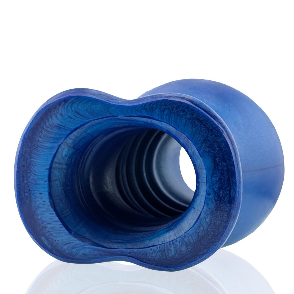 For the lucky bastard that gets to fuck your all-new pucker? A smooth inner chamber with ripples and welts near the deepest guts of the plug…at the tip of the plug the walls are thin with a little rolled lip, every time you thrust, the ridges rub your cockhead…lips pull on your cockhead…