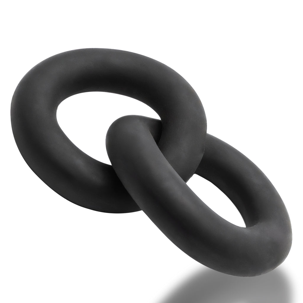OXBALLS new 2-link rings cockring NIGHT EDITION in our lush rubbery SILSOFT SILICONE blend and a smooth, velvet-black color. This is a softer, squishier formula for the hardest and darkest of play.