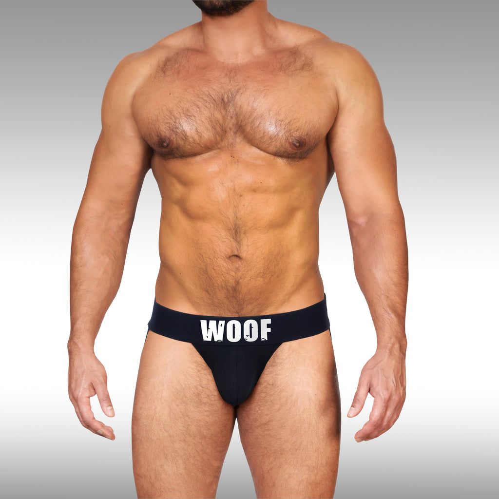 Say it loud. The Alpha Charlie “Woof” Jock Strap combines a wide, sturdy waistband with a soft stretch-cotton pouch for comfort that’s built to move — and be noticed. Designed for individuals who like to express their playful side, this custom-print jock strap features “Woof” across the front and a clean, plain back for balance.